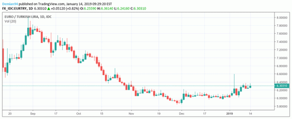 The biggest problem with EUR/TRY is the lack of central direction. The market does not correspond to the known patterns since any moment another piece of news may drop that will change the picture. This makes strategies based on Price Action practically unusable.